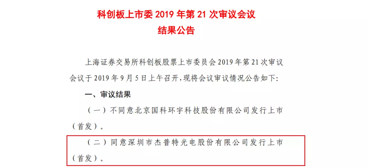 9月5日,上交所發(fā)布科創(chuàng)板上市委第21次審議會(huì)議結(jié)果公告,同意深圳市杰普特光電股份有限公司的上市申請(qǐng),杰普特成為無(wú)錫創(chuàng)投集團(tuán)基金在科創(chuàng)板上市的被投企業(yè)。
