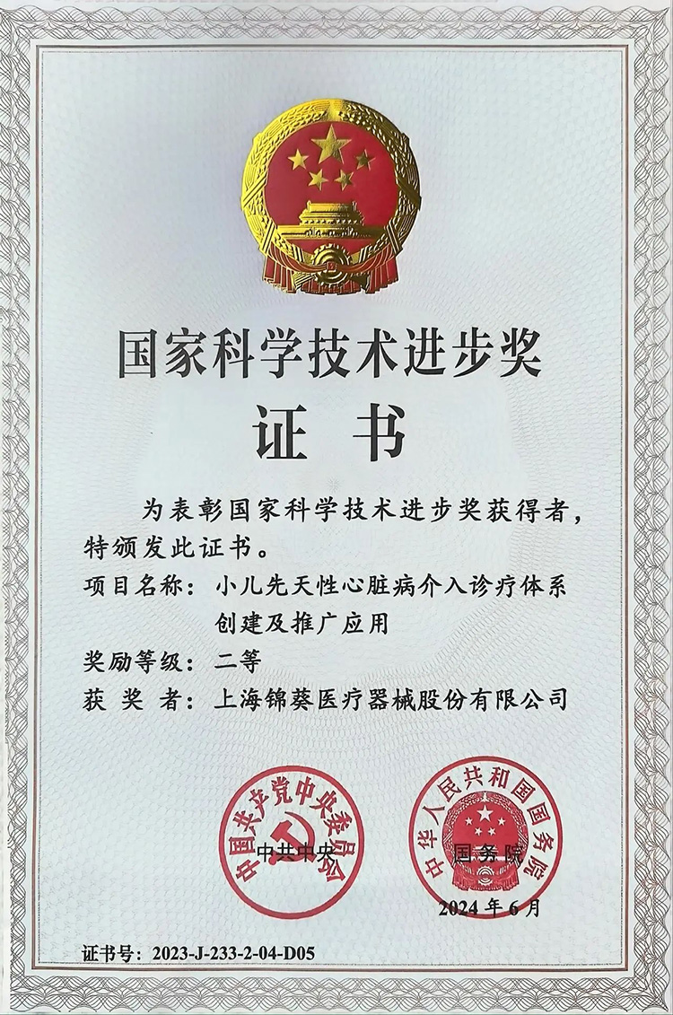 6月24日,全國(guó)科技大會(huì)、國(guó)家科學(xué)技術(shù)獎(jiǎng)勵(lì)大會(huì)、兩院院士大會(huì)在京召開(kāi)。會(huì)上公布了2023年度國(guó)家科學(xué)技術(shù)獎(jiǎng)獲獎(jiǎng)名單。其中,創(chuàng)投集團(tuán)被投企業(yè)上海錦葵醫(yī)療器械股份有限公司(以下簡(jiǎn)稱(chēng)“錦葵醫(yī)療”)參與完成的“小兒先天性心臟病介入診療體系創(chuàng)建及推廣應(yīng)用”項(xiàng)目榮獲國(guó)家科學(xué)技術(shù)進(jìn)步獎(jiǎng)二等獎(jiǎng)!