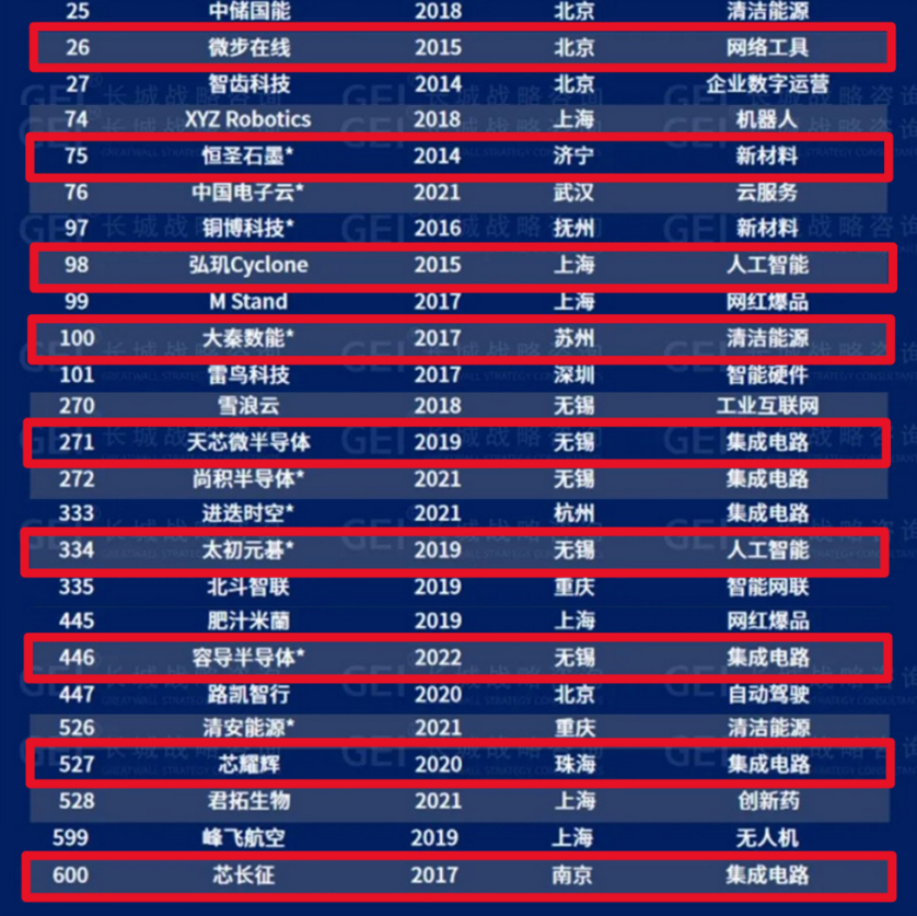 ![]() 長城戰(zhàn)略咨詢是國內(nèi)最早研究和發(fā)布“獨(dú)角獸”榜單的智庫機(jī)構(gòu),自2016年起連續(xù)多年發(fā)布中國獨(dú)角獸企業(yè)榜單及研究報(bào)告,自2020年起連續(xù)五年發(fā)布中國潛在獨(dú)角獸企業(yè)榜單及研究報(bào)告。GEI中國潛在獨(dú)角獸企業(yè)遴選依據(jù)《高成長企業(yè)分類導(dǎo)引》(GB/T 41464-2022)中潛在獨(dú)角獸企業(yè)標(biāo)準(zhǔn):